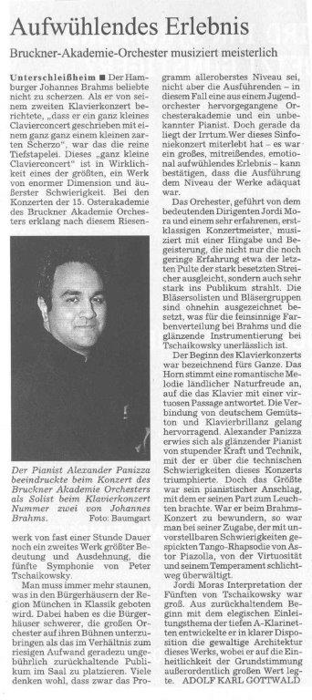 Unterschleißheim • Der Hamburger Johannes Brahms beliebte nicht zu scherzen. Als er von seinem zweiten Klavierkonzert berichtete, „dass er ein ganz kleines Clavierconcert geschrieben mit einem ganz ganz einem klemen zarten Scherzo“ war das die reine